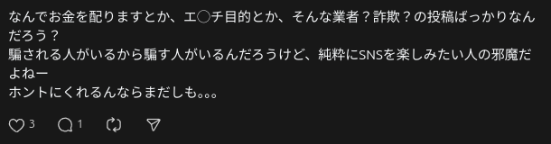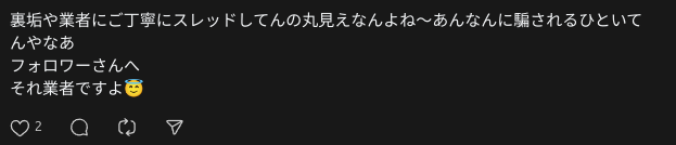 なぜって、 業者アカウントばかりに反応していますと、